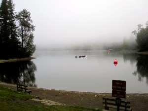 Fog rolled in right as we were starting the swim. It was a two loop .6 mile diamond shaped course so the buoys were closer together than normal, but the fog got so thick it was hard to see them. I was sighting off the arms of a guy in front of me in a sleeveless wetsuit. Felt like I zigged and zagged a bit inside and outside the buoy-line which gives me a sponsorship idea.