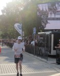 The finish. Pardon the sexism, but when a female athlete passes you in the last 100 meters of a triathlon, it’s referred to as “getting chicked”. With 100 meters to go I was “geezered”. A ripped guy with the number “60” on his calf passed me at the 140.5 mile mark. I was relieved to hear the announcer say he won his age group (by 45 minutes it turns out), but still, to spot the guy ten years?!