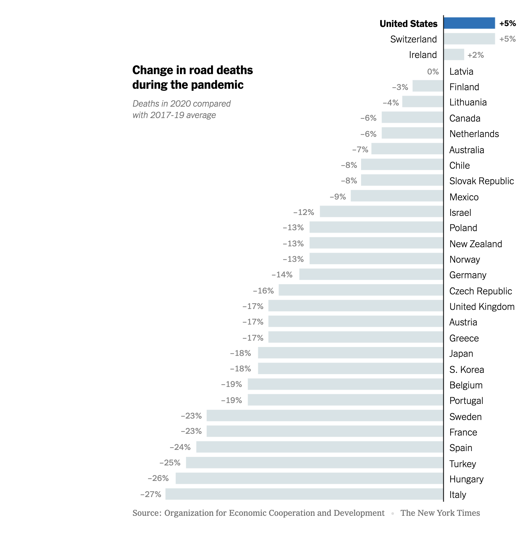 The Exceptionally American Problem of Rising Roadway Deaths.