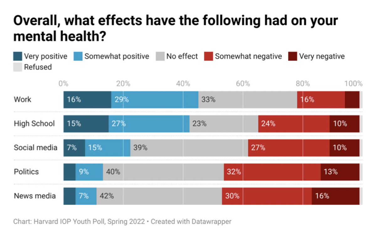 Harvard’s Institute of Politics words. A cornucopia of data including this graphic. My admittedly simplistic take-away. Spend way less time on-line and more at a job that requires your full attention.