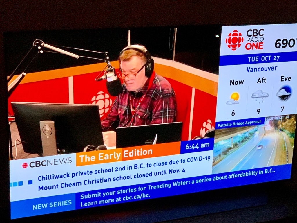 Spinning easily while watching Canadian public radio on television.