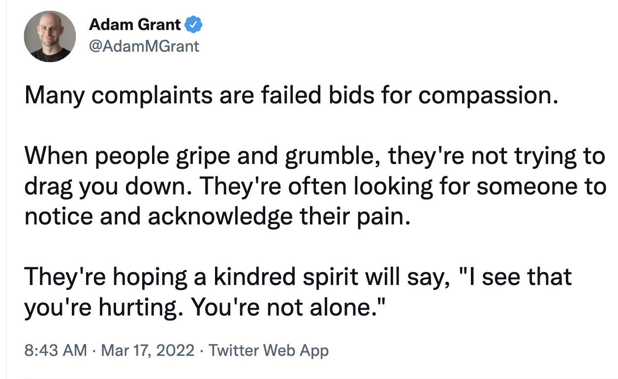 “From 1985 to 2004, the percentage of people who reported having at least one friend on whom they could rely and with whom they could discuss important matters dropped to 57 percent from 80 percent. Today, more than half of all Americans report feeling lonely, especially in their professional lives. But study after study has shown that those who are seen as grateful, warm and justifiably confident draw others to them. Because these emotions automatically make us less selfish, they help ensure we can form relationships with people who will be there to support us when we need it.”