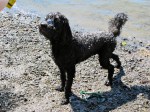 Perfect. No-one in sight. Unleash him, pop the ring in his mouth, and he Usain Bolts it to the lake’s edge. A razor thin layer of wispy fog rests listlessly three-four feet above the water. Seventh or eighth throw goes a little farther than normal and he can’t pick it out, so he just kind of paces the shoreline, perplexed. Gradually, it drifts farther offshore. Now it’s in the low 50’s and my sweat has dried, but what can I do but strip down to the running shorts and retrieve it myself. We swim after it side-by-side, my head down, his up (note to self: become world famous by teaching Mdawg to swim with his head in the water, breathing to the side).