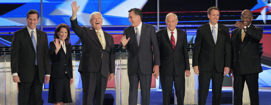 Romney and Santorum Post-Debate Posted on February 28, 2012 by Ron Byrnes Reply • What was with that guy with all the questions? • Lucky for you everyone was watching Modern Family • Maybe Gingrich was Reagan’s love child • You see Paul nod off? • Think Mitch Daniels is regretting his decision much?