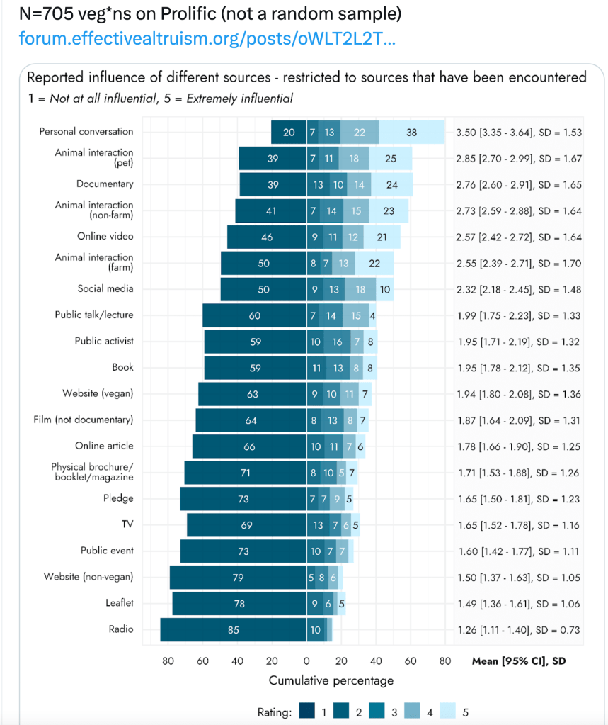 The take-away. Don’t chalk the bike path with pro-vegan bromides, which is leaflet-like; instead, talk to them.
